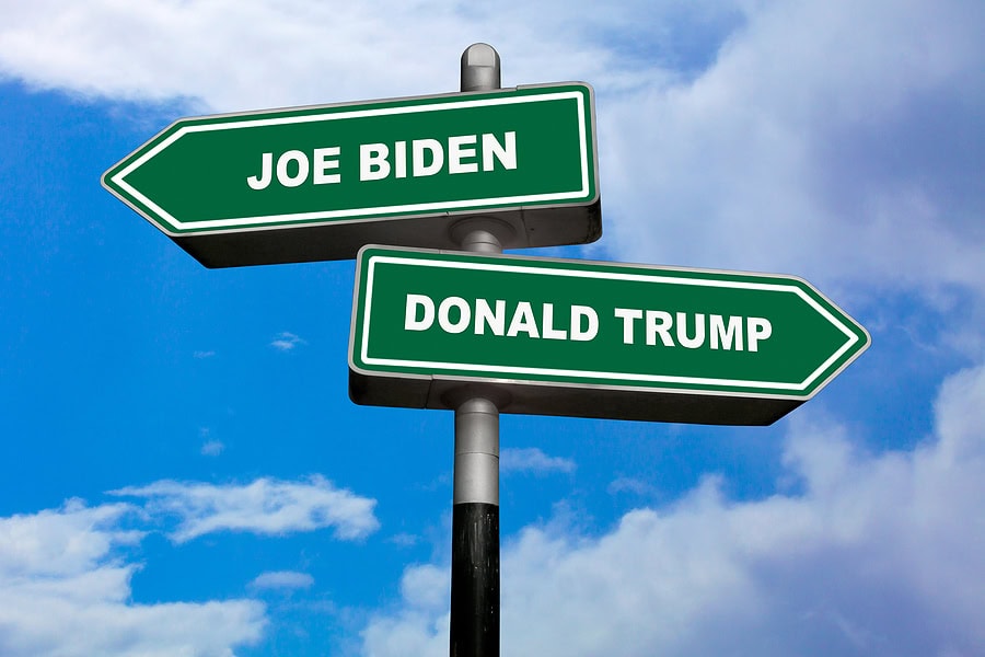 Two Direction Signs, One Pointing Left (joe Biden), And The Othe