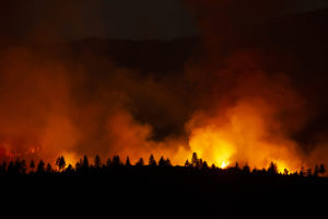 Raging Wall Of Smoke Coming From Wildfire In Forested Valley Are
