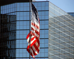 Skyscraper Offices American Flag